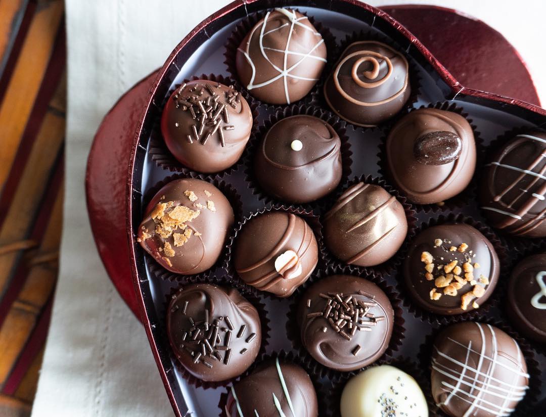 Specialty local chocolate shop specializing in ganache filled truffles, almond, cashew, hazelnut and walnut and glazed pecan bark. Specialty Gelato shop with a wide variety of flavors and toppings.