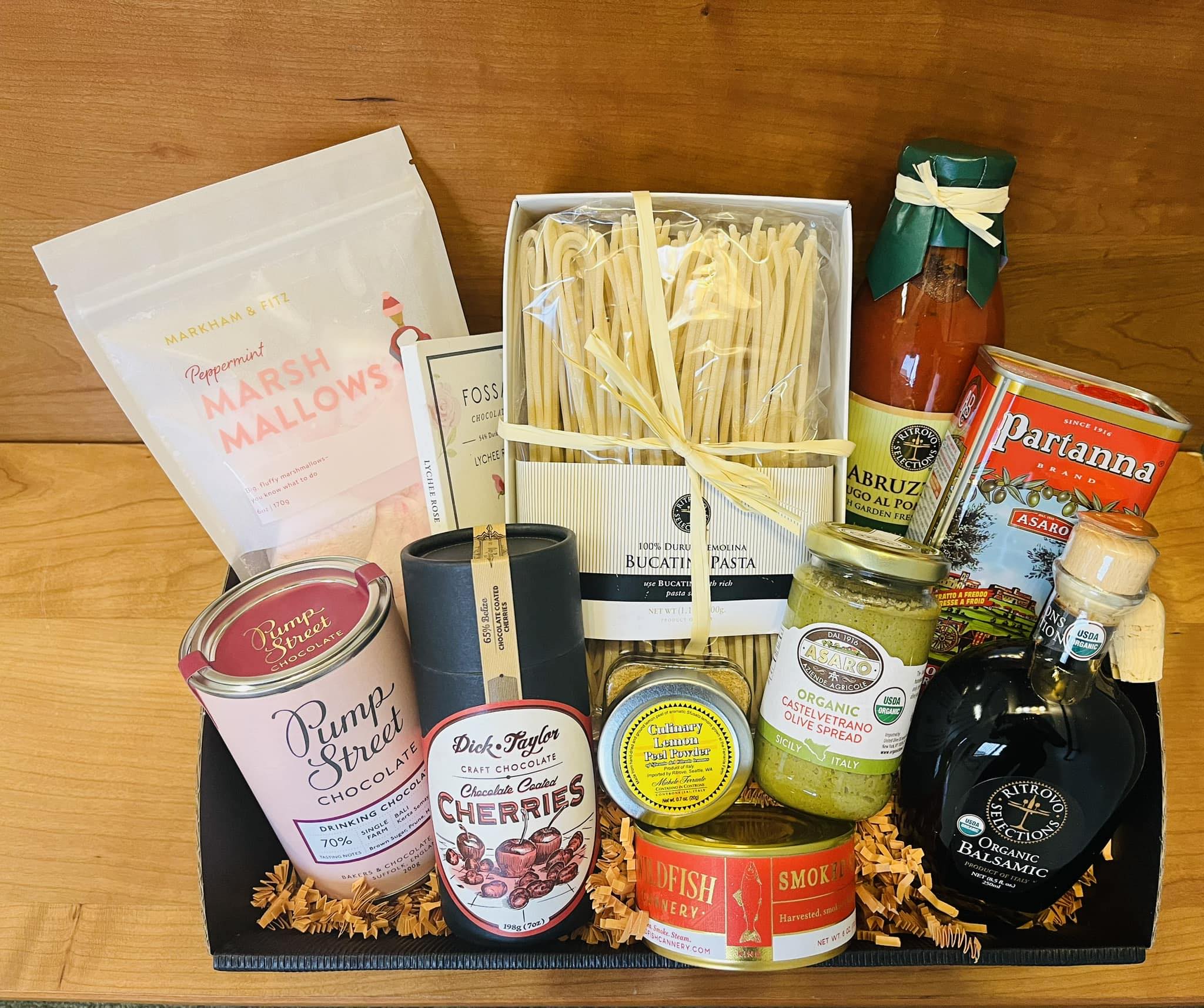 Unique local and international food, wine, vermouth, cider, cocktail fixings, select meat & cheese, chocolates, seasonal specialties, gift baskets & bags, subscriptions, kits, and clubs!