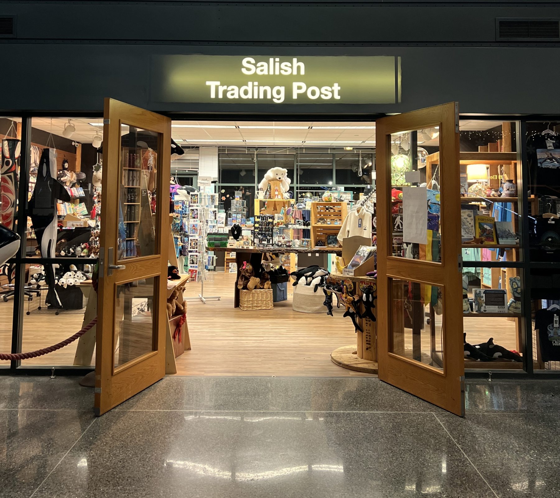 Open inside the Bellingham Cruise Terminal in Fairhaven, the Salish Trading Post offers a wide selection of Gifts from the Northwest / Salish Sea region including t-shirts, hats, jackets, postcards, and greeting cards.